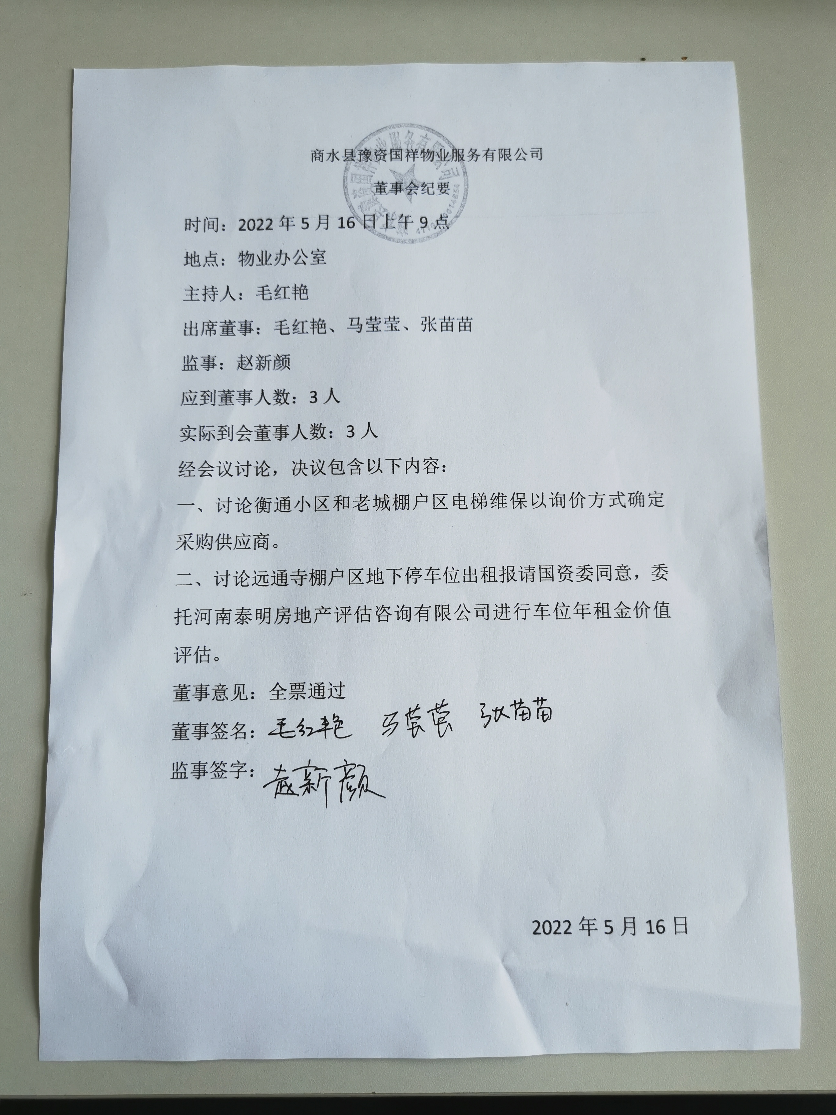 商水縣豫資國祥物業(yè)服務(wù)有限公司詢價(jià)紀(jì)要